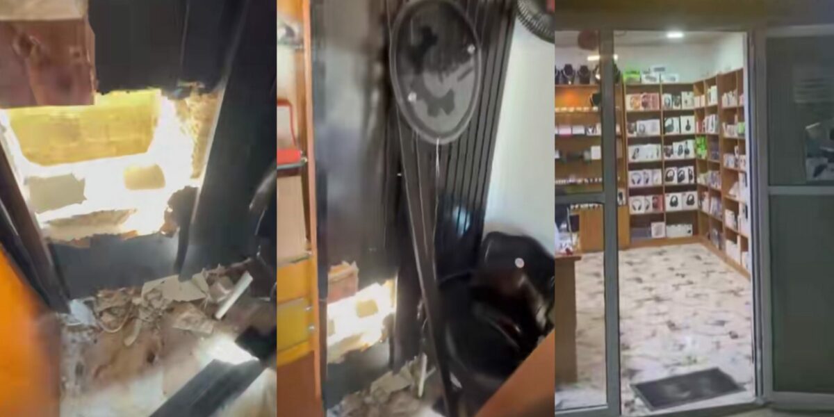 Some thieves had used a sharp metal object to dig through the wall and into his shop where he sells phone gadgets.