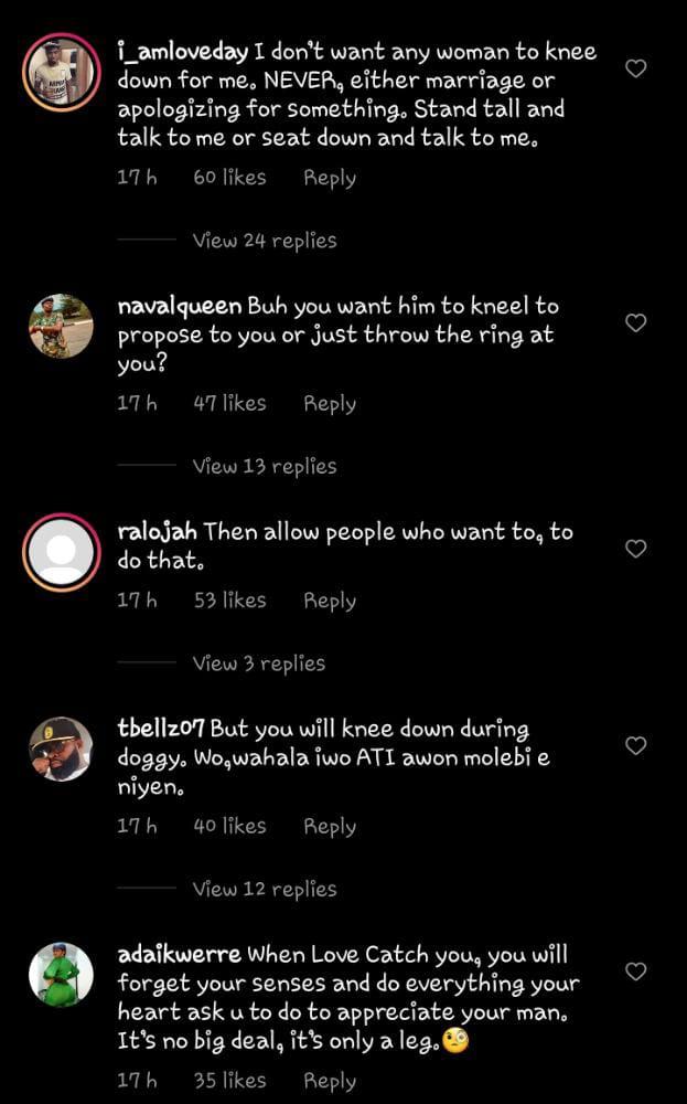 “But you will kneel during doggy” – Reactions as lady vows never to kneel to propose to a man