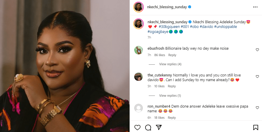 “Nkechi Blessing Adeleke Sunday😍❤️📌 #30bgqueen #001 #obo #davido #unstoppable #ogoagbaye🌏🌏🌏”