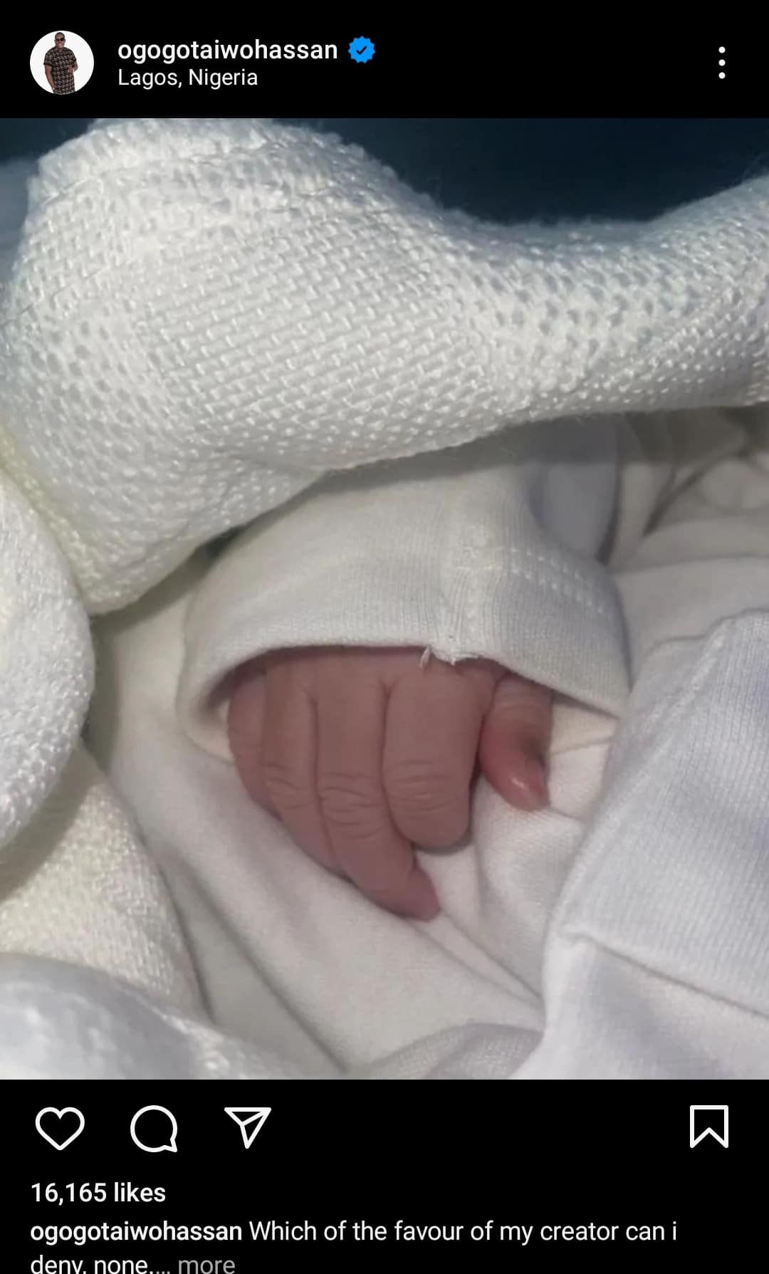 toyinabebi: “Congratulations sir may Allah bless the baby and the parents of the baby.”