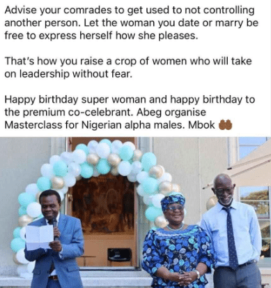 The controversy began when Pius took to social media to laud Dr. Ngozi Okonjo-Iweala’s husband, Dr. Ikemba Iweala, for his supportive role during her recent 70th birthday celebrations.