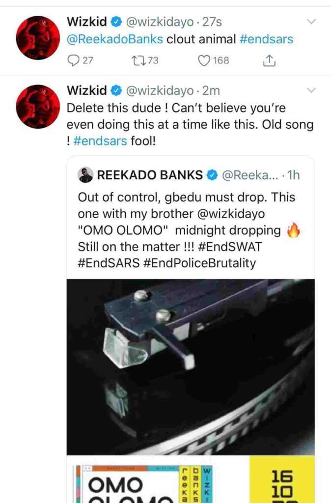 “Can’t believe you’re doing this at a time like this, fool!” – Wizkid blasts Reekado for attempting to release their ‘old song’ amidst #ENDSARS protests