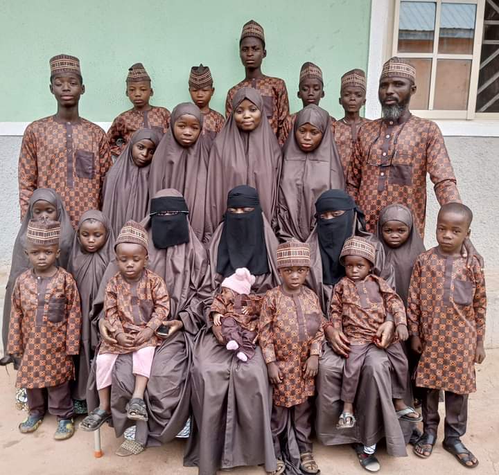 “Cash out for the tailor” – Man causes a stir as he strikes a pose with his 3 wives and 19 children (Photos)