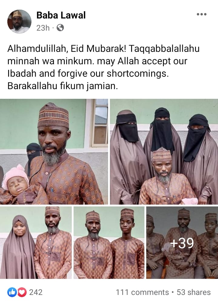 Following the pleasant Eid-El-Kabir celebration, a man has taken a photo with his family to mark the event.