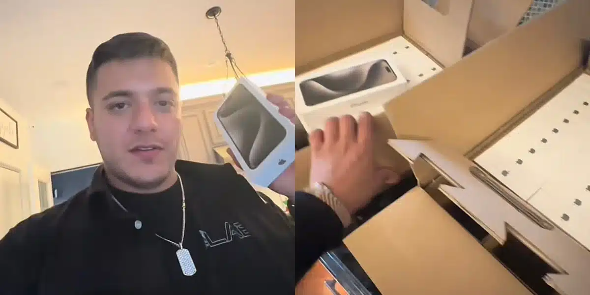 He claims to be a businessman who needed the phone for his job, ordering the iPhone 15 pro max, 1 terabyte for himself and three for his media guys, 256 gigabyte each.