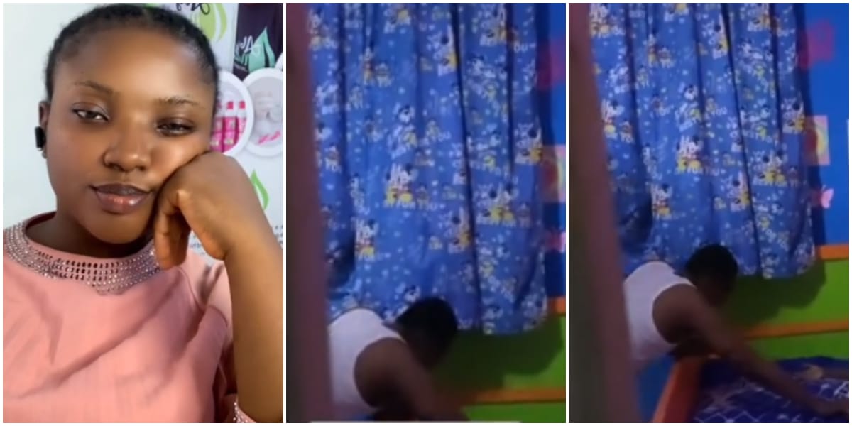 A Nigerian woman identified as @abynaturals has shared a viral video capturing what she found her husband doing in their children’s room at 3am.