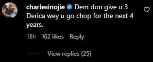 He wrote: “Dem don give u 3 Derica wey u go chop for the next 4 years.”