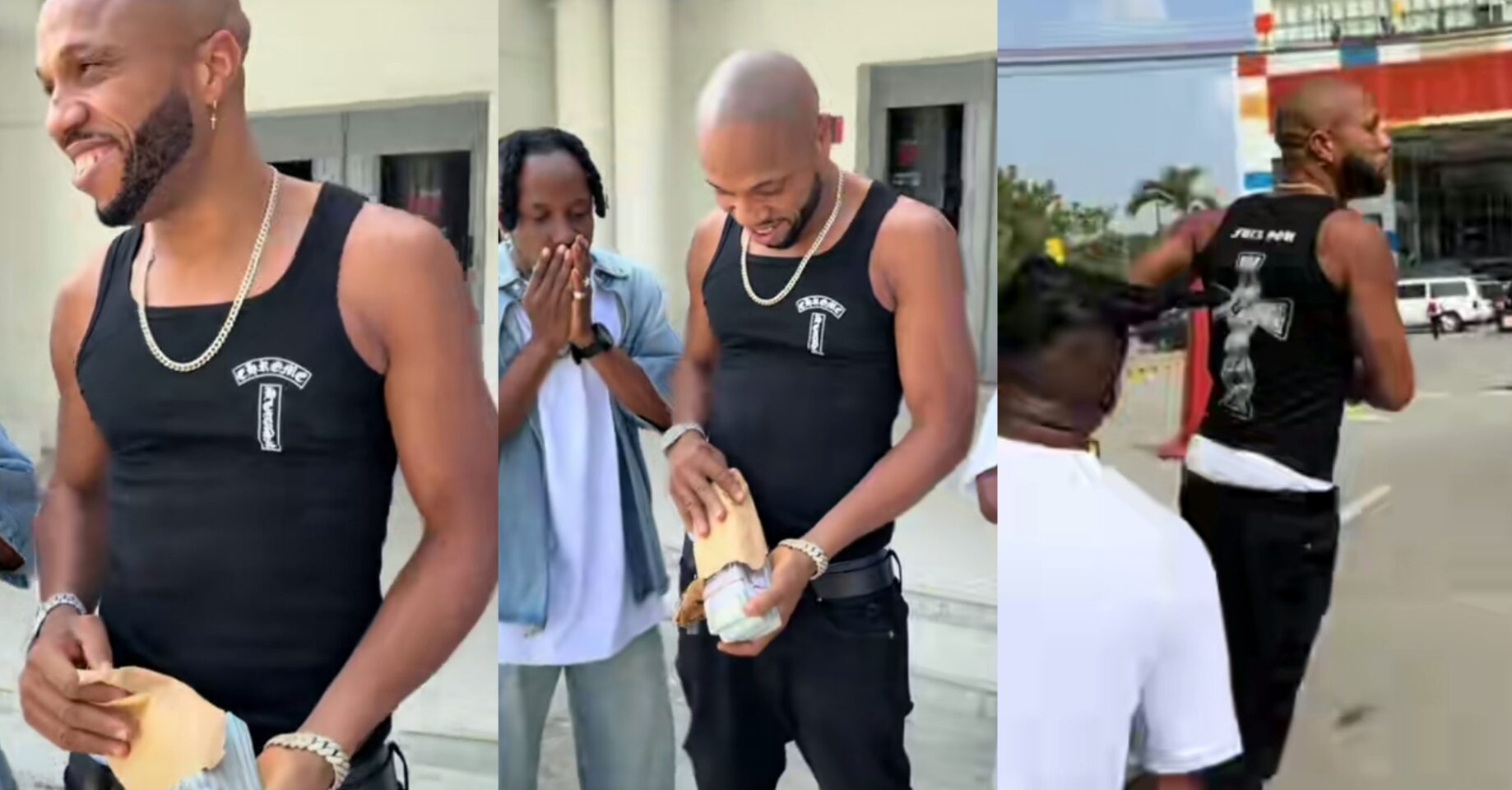 Charles Okocha runs outside bank premises as Tony Elemelu surprises him with $50,000