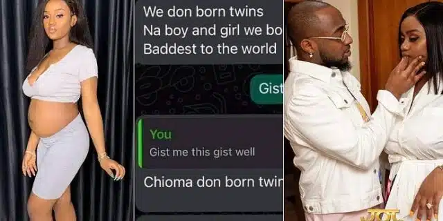 Leaked WhatsApp chats have claimed that ace Nigerian singer, Davido, welcomed a set of twin babies with his wife, Chioma.