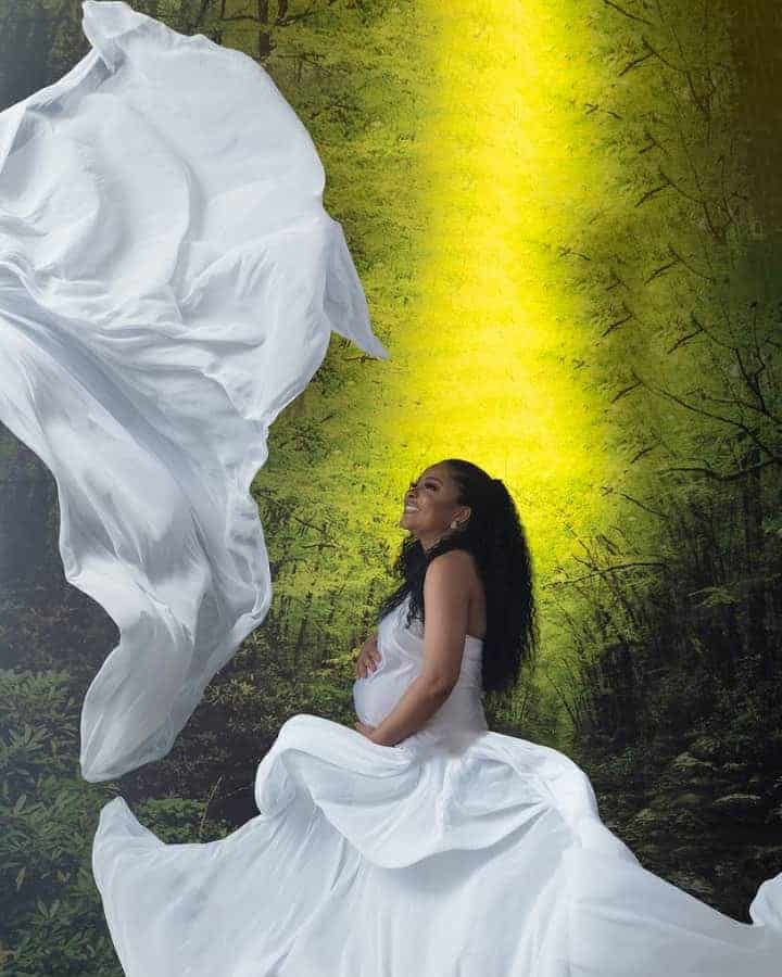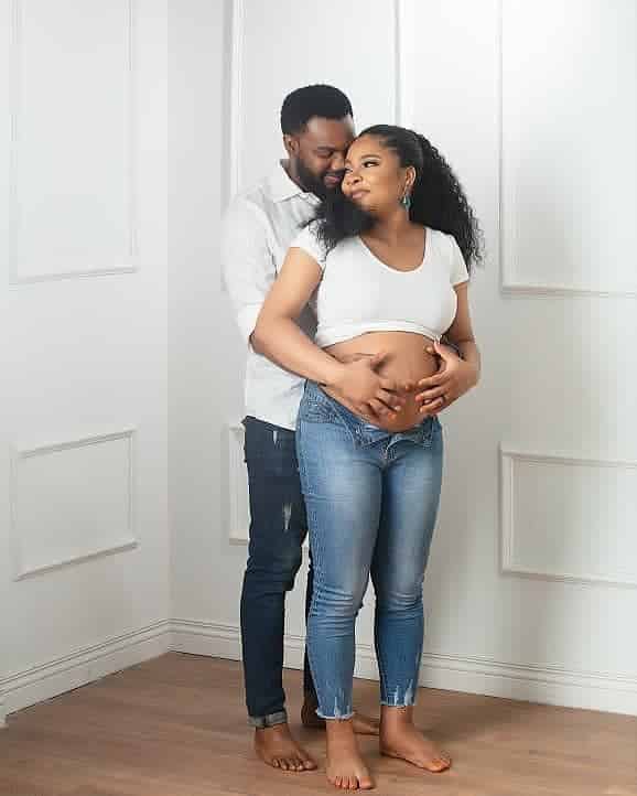 Ibrahim shared the good news on his Instagram page, thanking God that His word has become flesh. Here are stunning maternity photos of the couple.