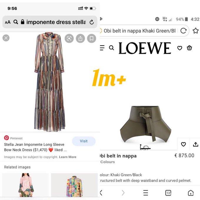 Erica wore a $1470 (N570k) Stella Jean Imponente Long Sleeve Bow Neck Dress and an £870 obi belt in nappa, to the party which was attended by fellow ex-housemates.