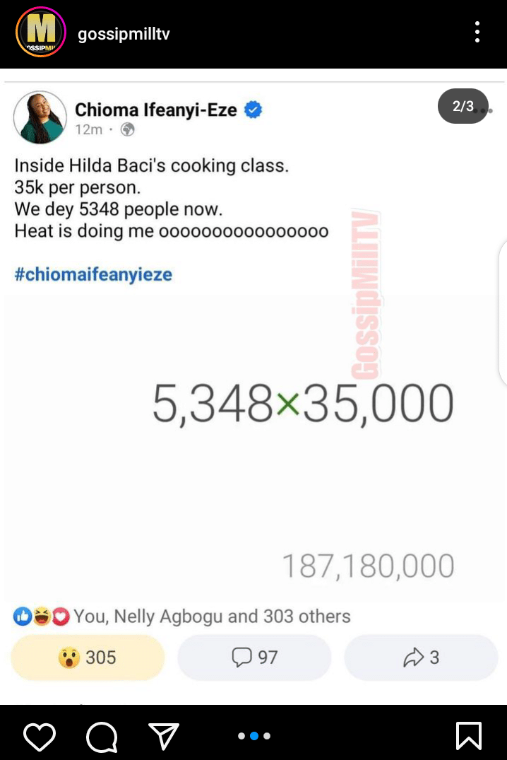 After sharing these claims on her social media page, another user supported her statement, confirming that the Nigerian chef has indeed made a substantial amount from her cooking class.