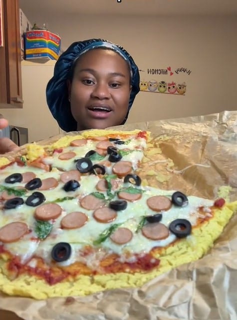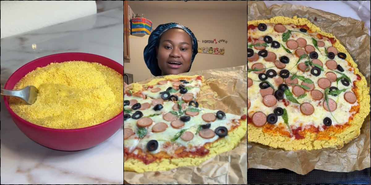 The content creator identified as @pamelakitch took to the video-sharing platform, TikTok to share a step-by-step procedure of making a pizza variant.