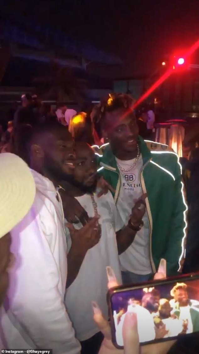 English footballers of Nigeria descent, Tammy Abraham and Fikayo Tomori, were pictured partying with Nigerian singer, Davido during the after party of the singer’s brother’s wedding in Dubai.