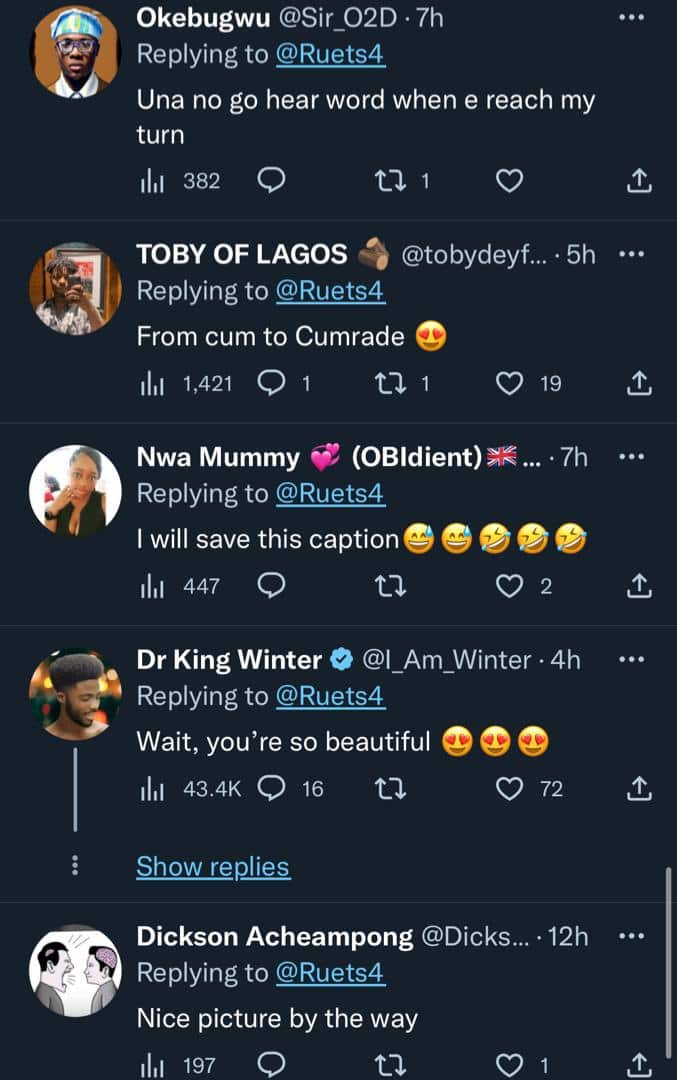 Social media users trooped in numbers to her page to condemn the post as rather disturbing while others considered it to be a smooth line.