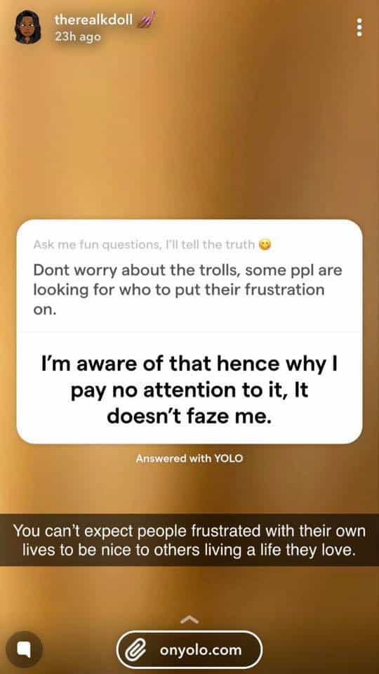 She added that the least people can do is hate her even though whoever she decides to “mess with” both boy or girl, is nobody’s business.