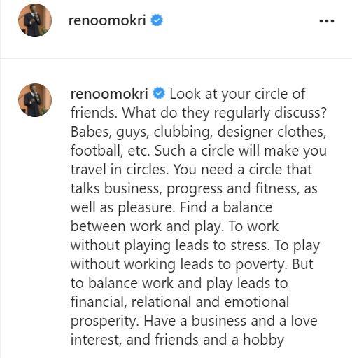 Human rights activist, Reno Omokri hints that the wrong circle of friends may influence the decision to be poor or financially stable.