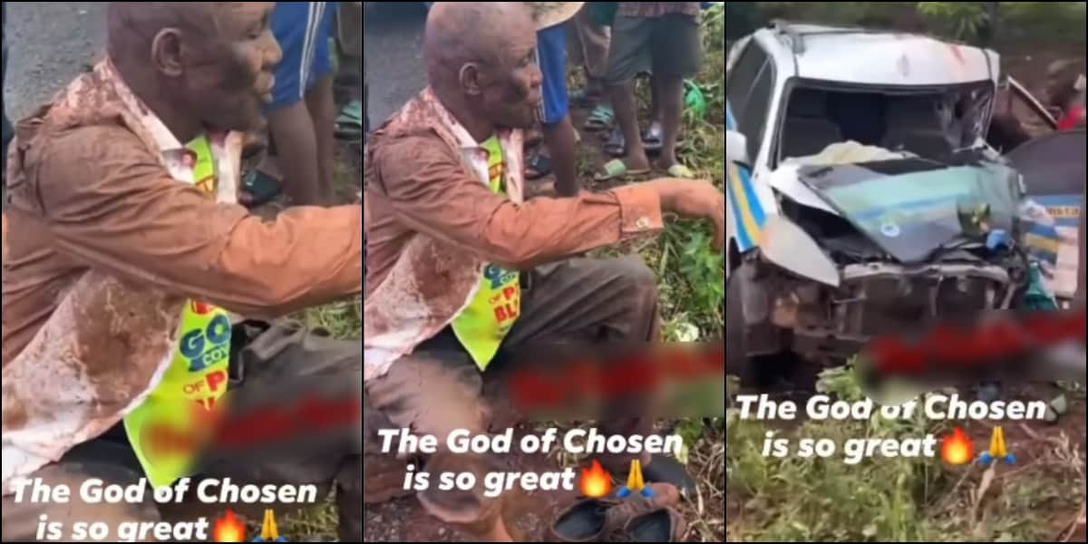 A trending video shows a Lord’s Chosen member who survived a ghastly accident while wearing his apron.
