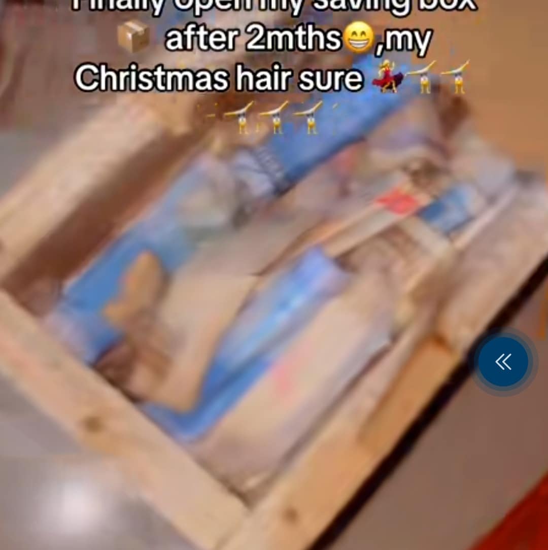 The caption, ‘Finally opened my savings box Within 2 months, Christmas hair sure,’ prompted social media users to guess the specific amount saved by the lady in two months.