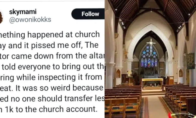 A member of a church in Nigeria has claimed that her pastor inspected the church members’ offerings and said one should transfer less than a thousand Naira to the church account on Sunday.