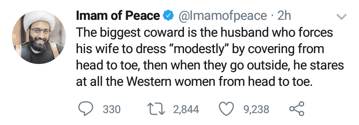 “The biggest coward is the husband who forces his wife to dress “modestly” by covering from head to toe, then when they go outside, he stares at all the Western women from head to toe.”