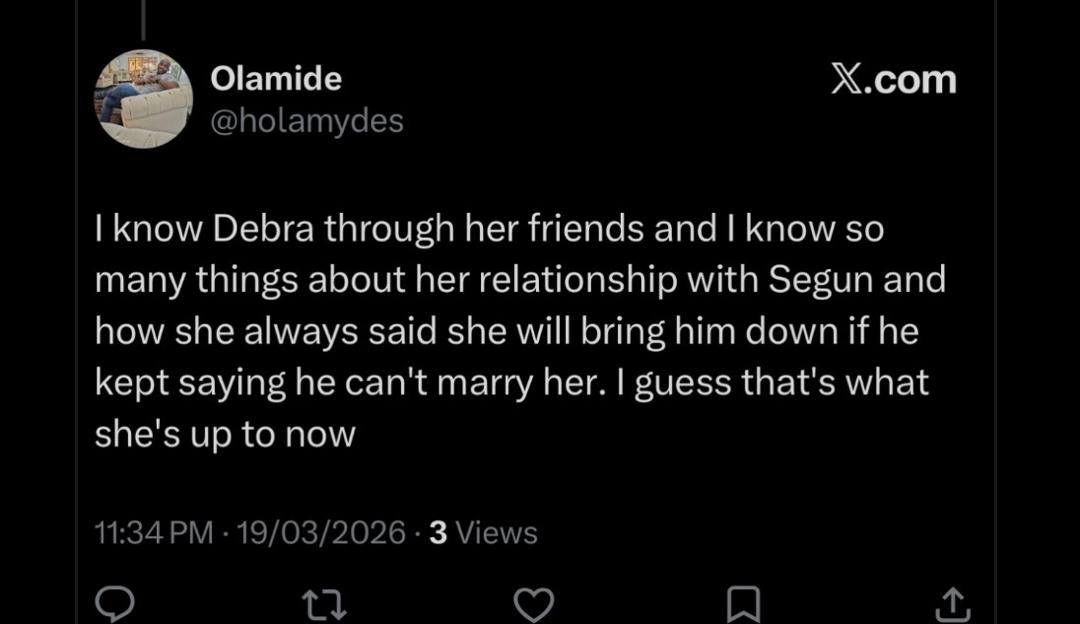 The development has sparked mixed reactions online, with some fans calling on Segun to share his side of the story, while others expressed shock over the alleged breakup and the conflicting narratives.