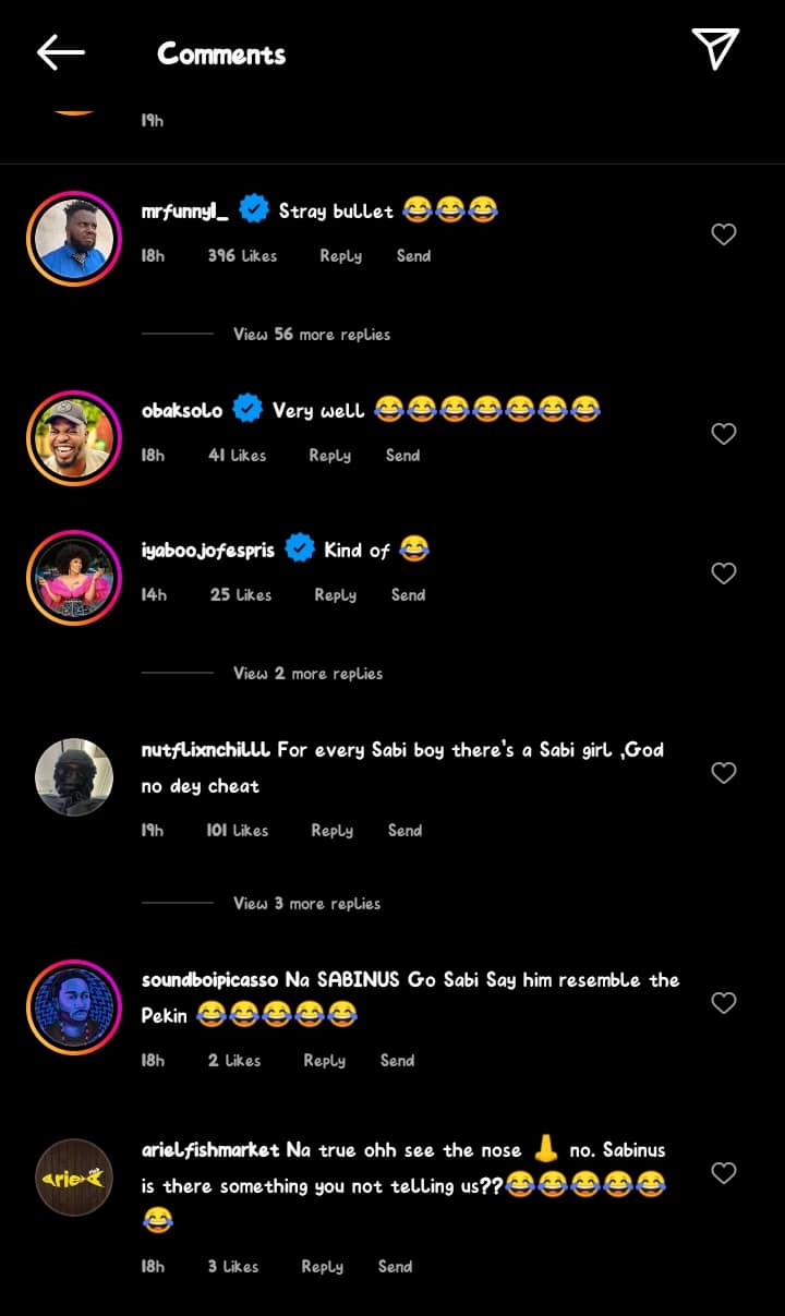 Sabinus spotted the post and took to the comments section to share his thoughts.