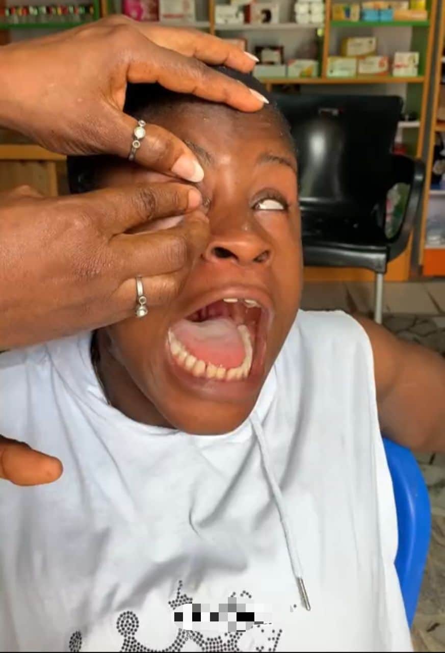In the TikTok video posted by beautician @officialezigold, the video captures the emotional moment when the lady, overwhelmed by the discomfort of the lenses, begins to cry bitterly and plead for their removal.