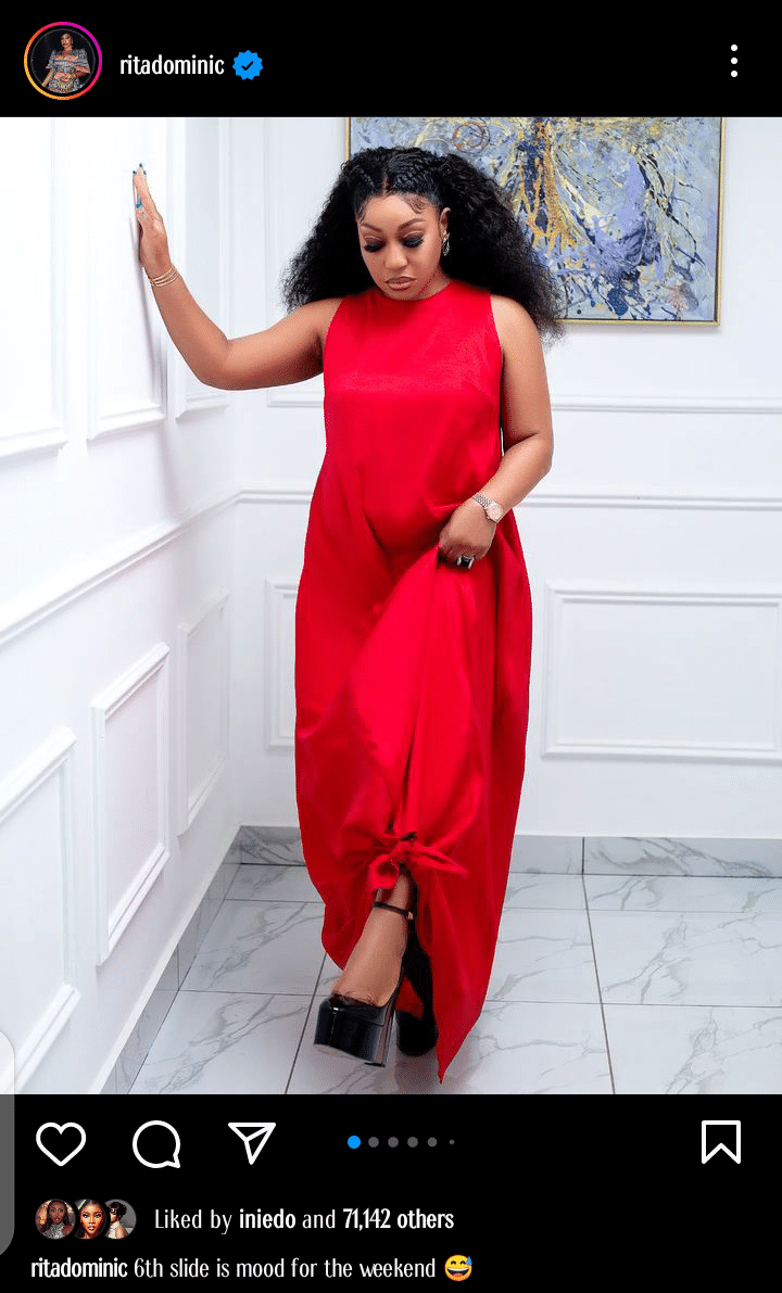 To celebrate the weekend, Rita Dominic delighted her fans by sharing some stunning photos of herself dressed in vibrant red attire.