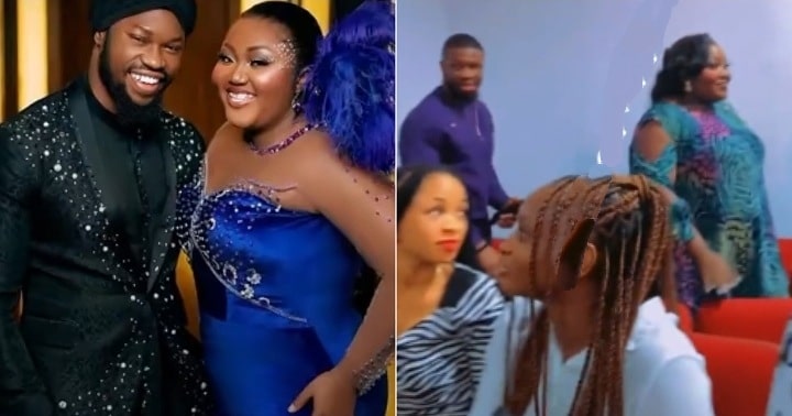 Blessing Obasi in the video, stretched her hand towards Stan Nze but he turned her down and continued talking to an unknown lady while his wife walked away.