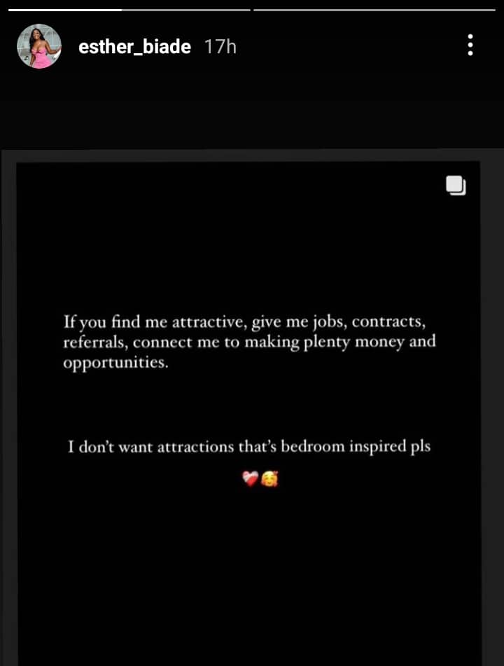 Connect me to money making deals, not to your bedroom – BBNaija Esther to admirers