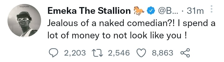 It would be recalled that the comedian has been having a lot of issues with Berri Tiga over song ownership following the success of their debut hit ‘Machala’.