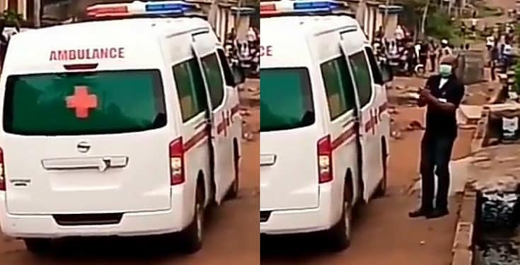 An unidentified man in Ikotun, Lagos has shared a video of an ambulance evacuating patients from his neighbourhood to alert Nigerians about the reality of Coronavirus.