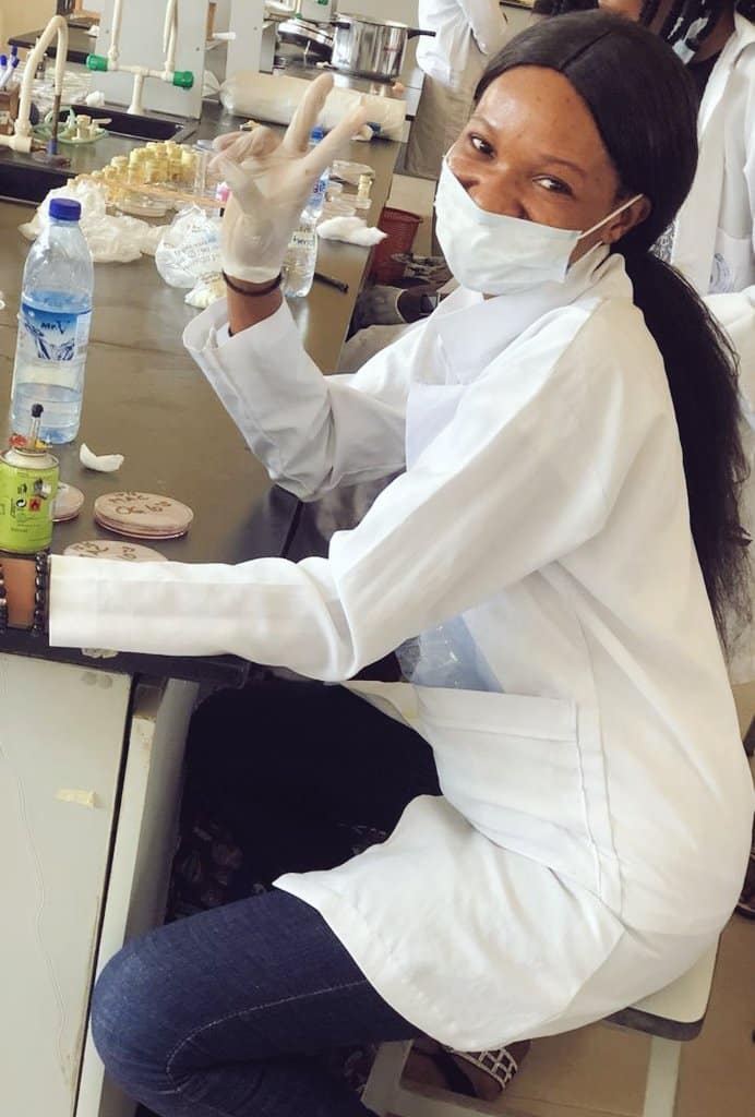 The lady, who is simply identified as Gracious, says she will not leave the laboratory till she finds cure for coronavirus.