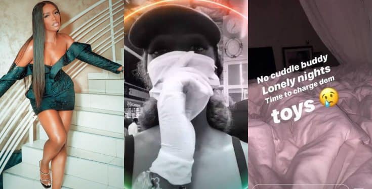 Nigerian music star, Tiwa Savage, has also taken to social media via her Instastory to share how she is handling the isolation. Tiwa revealed loneliness has started to set in and that she has no cuddle partner.