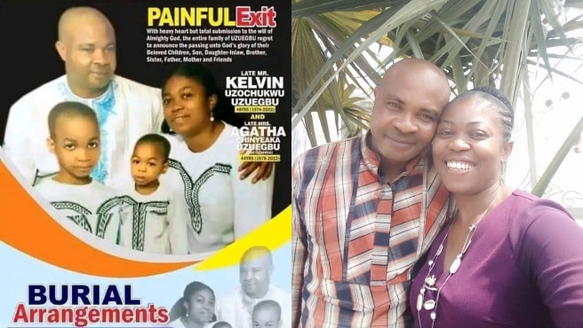A Nigerian couple, identified as Kelvin Uzochukwu and Agatha Chinyere Uzuegbu, and their two children have died in an accident.