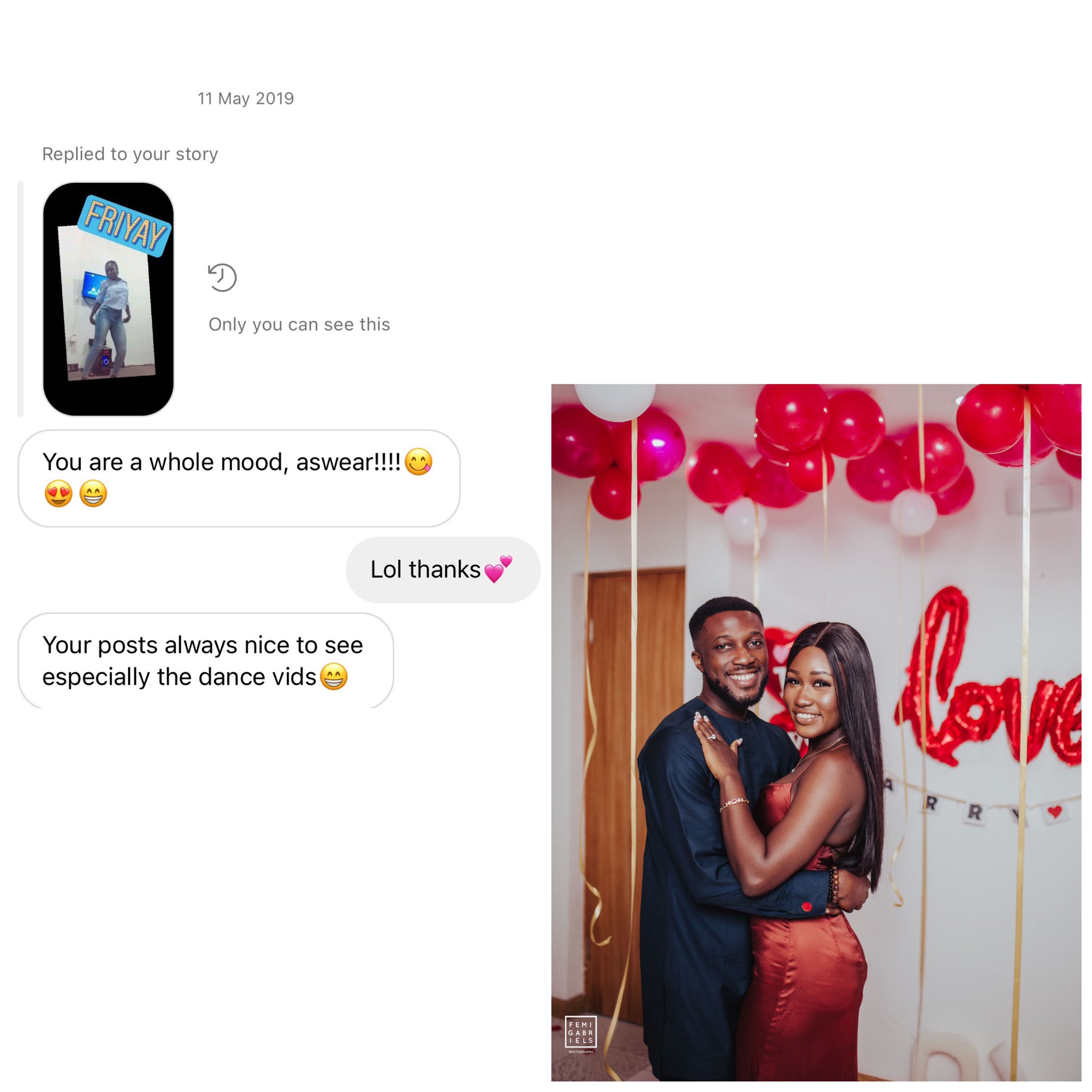 She shared series of photos of herself and boyfriend and a screenshot of their first message on Instagram.