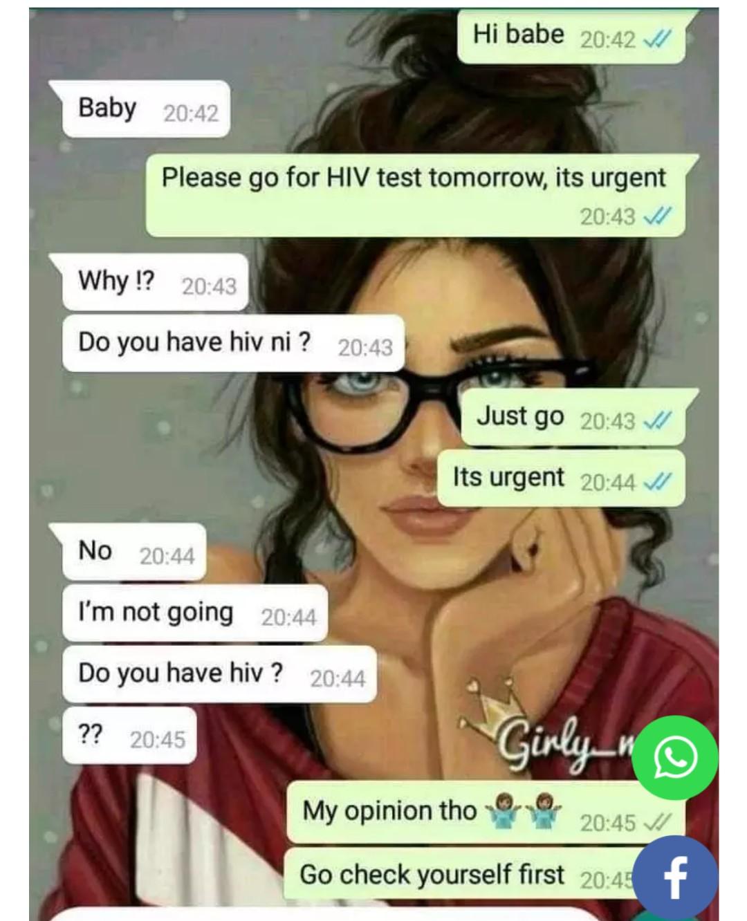 The couples were instructed to text their partners to go for HIV test and screenshot the reply they receive from them.