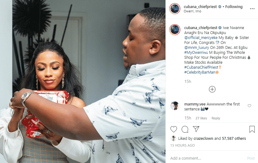 It looks like the issue between BBNaija 2019 winner, Mercy Eke, and her top fan and benefactor, Cubana Chiefpriest has been resolved.