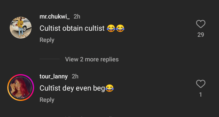 Following the incident, numerous Instagram users, who are familiar with the popular comedian, took to the comment section to offer their advice and opinions. One user’s comment stood out, saying “cultist don obtain cultist”