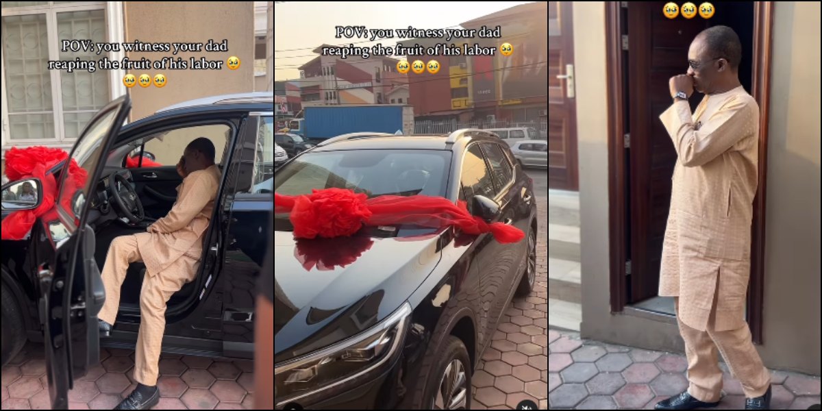 A viral video captures the emotional moment father breaks down in tears as his children contribute to surprise him with a brand new car for taking good care of them.