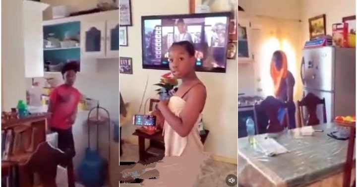 The girl who didn’t seem so bothered was busy pressing her phone while the boys stood at different sides of the house. Her father, on the other hand, slapped her without mercy.