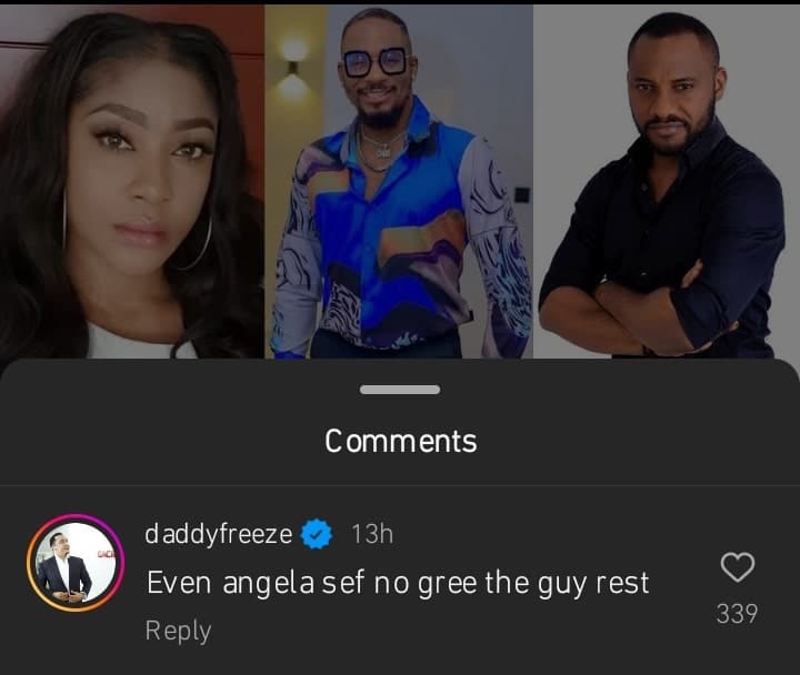 Actress Angela Okorie has been slammed by Daddy Freeze a few hours after dragging Yul Edochie for his comment about the late Junior Pope.