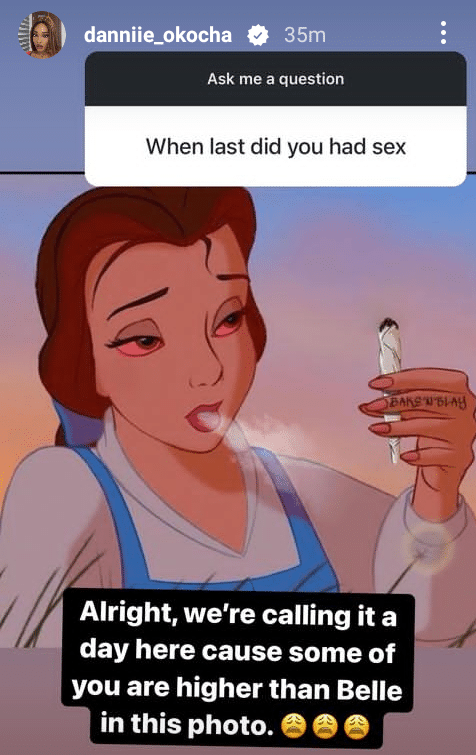 “Alright, we’re calling it a day cause some of you are higher than Belle in this photo.”