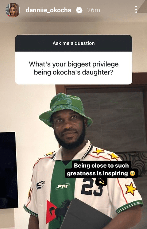 “What’s your biggest privilege being Okocha’s daughter?” the netizen asked.