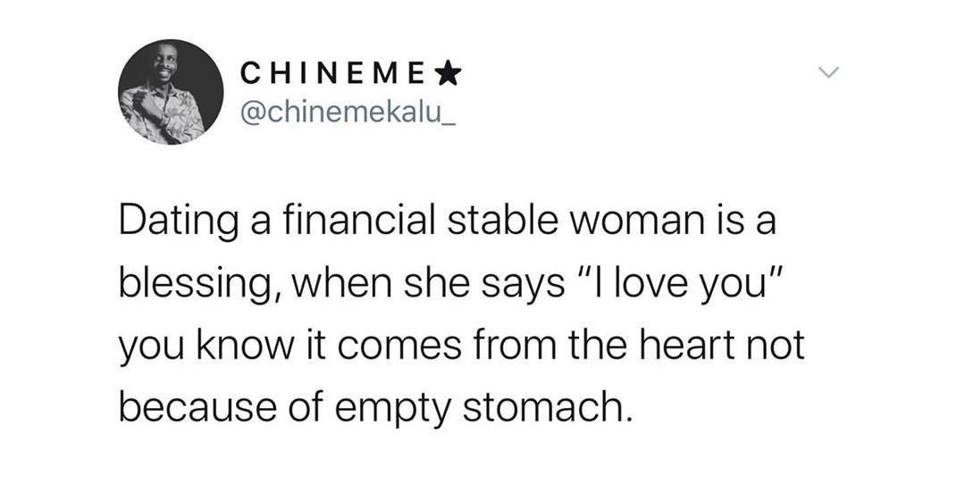 “Dating a financially stable woman is a blessing, when she says “I love you”, you know it comes from the heart not because of empty stomach.