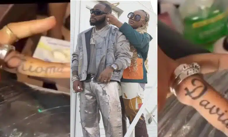 Celebrity couple, Chioma and Davido’s love waxes stronger as they get each other’s name tattooed on their ring finger.
