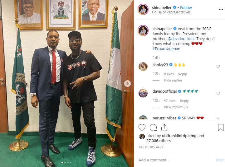 Popular Nigerian singer David Adeleke, popularly known as Davido, has paid a visit to House of Representative member Shina Peller. The singer paid the visit alongside his crew, including Peruzzi and Zlatan Ibile.