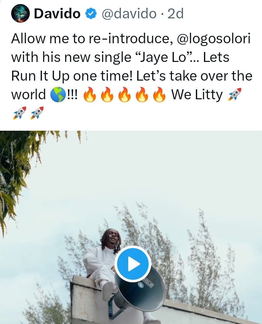 Famous Afrobeats singer, Davido has deleted the much controversial music video of his signee, Logos Olori, after facing intense backlash online.