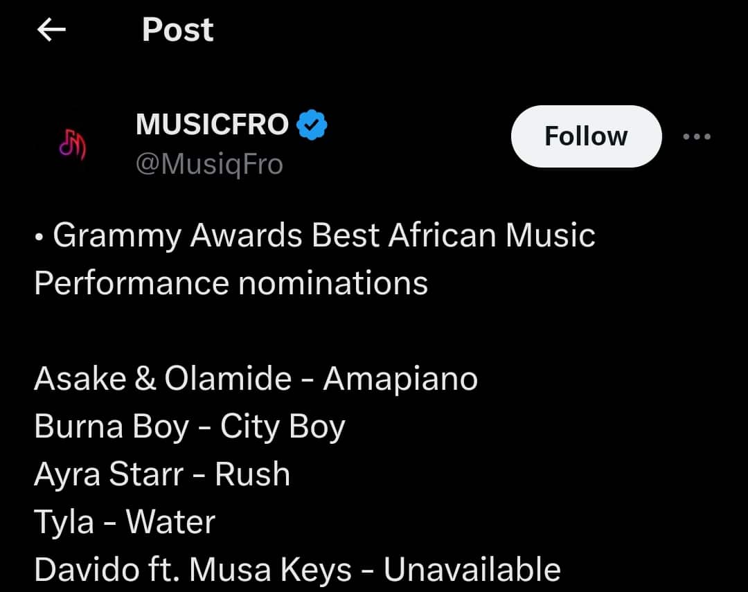 @seunfunmi002: “Boya David will win Grammy today, if he doesn’t wo we move he is still the best.”